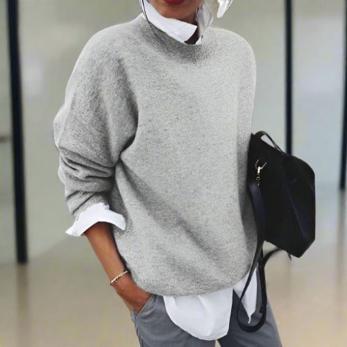 Damtröja - Oversized Passform - Hög Krage - Mjuk och Varm Stickad Design