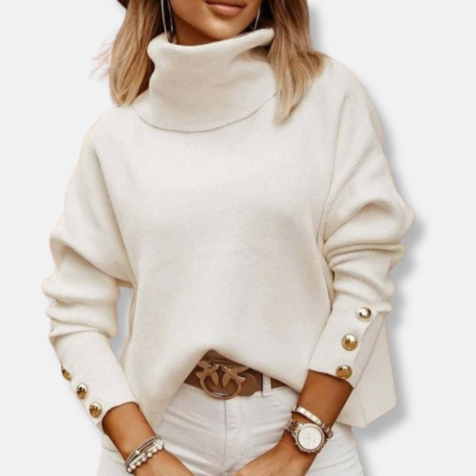 Damtröja med turtleneck – Ribbstickad – Avslappnad passform – Dekorativa ärmknappar