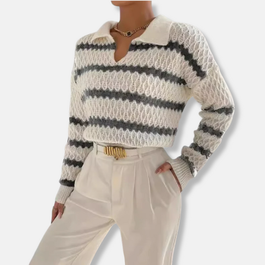 Damtröja – Avslappnad Passform – Mjuk Stickad – Randig Struktur – Lång Ärmslut