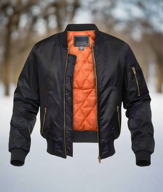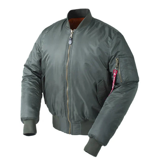 Herr Bomberjacka – Avslappnad Passform – Vadderat Foder – Ribbad Krage och Muddar – Ärmficka med Dragkedja