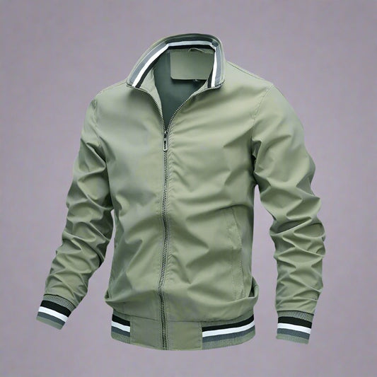 Herr Bomberjacka - Ribbad Krage - Slim Fit - Lätt och Bekväm - Dragkedja