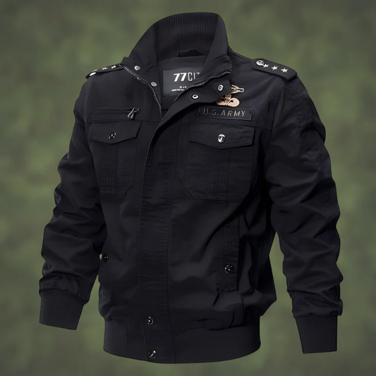 Herr bomberjacka – Regular fit – Militärdesign – Bröstfickor – Ribbad krage och fåll