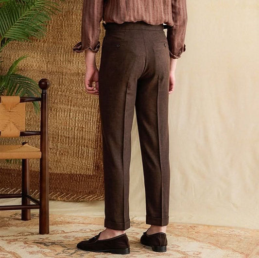 Herr Byxor - Skräddarsydd Passform - Plisserade Front - Elegant Ullblandning