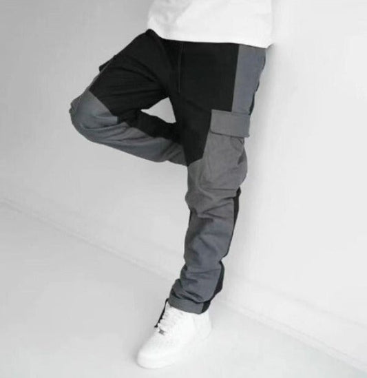 Herr cargobyxor – Lös passform – Avsmalnande ben – Patchwork – Flera fickor