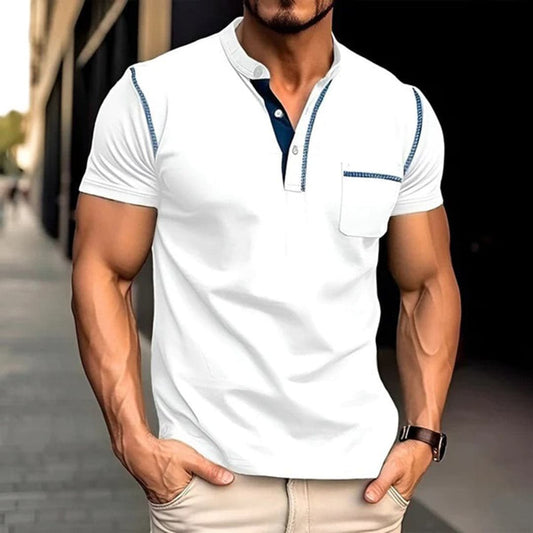 Herr Henley-tröja – Kort ärm – Knappslå med tre knappar – Bröstficka – Slim Fit