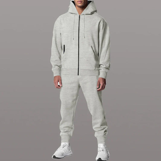 Herr Träningsset – Avslappnad Passform – Huva med Dragkedja – Mjukt Bomullstyg