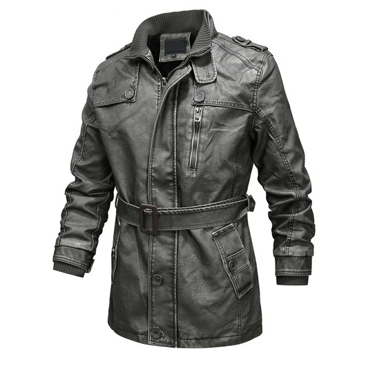Herr Trenchcoat – Slim Fit – Läder – Enkelknäppt – Lång Modell – Klassiska Epåletter