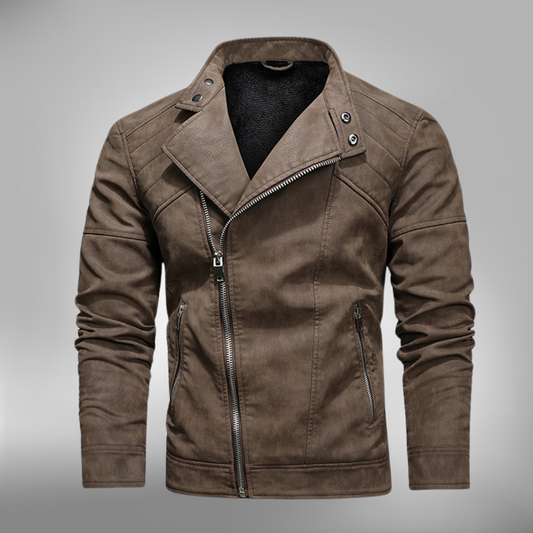 Herrjacka i bikerstil – Slim Fit – Quiltade axlar – Sned dragkedja – Ståkrage med tryckknapp