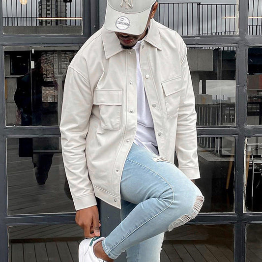 Herrjacka i fuskläder – Avslappnad passform – Tryckknappsstängning – Bröstfickor