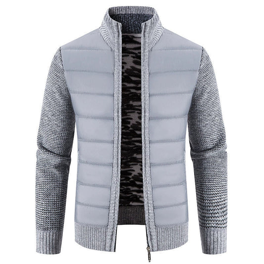 Herrjacka hybrid – quiltad kropp – stickade ärmar i ullblandning – ståkrage – hel dragkedja