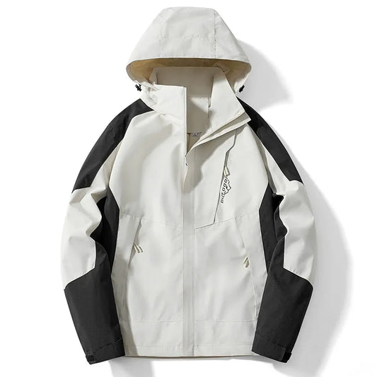 Herrjacka för Utomhusbruk – Vind- och Vattenavvisande – Justerbar Huva – Flera Dragkedjefickor – Normal Passform