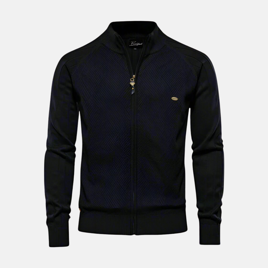 Herrjacka Stickad – Regular Fit – Strukturerad Textur – Hög Krage – Dragkedja