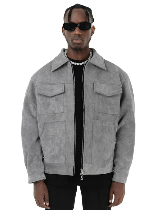 Herrjacka – Mocka – Slim Fit – Ståkrage – Dragkedja – Flera Fickor