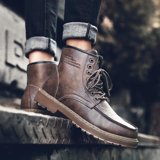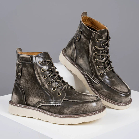 Herrkängor - Slitstarkt Läder - Halkfri Gummisula - Förstärkt Tå - Stabilt Ankelstöd