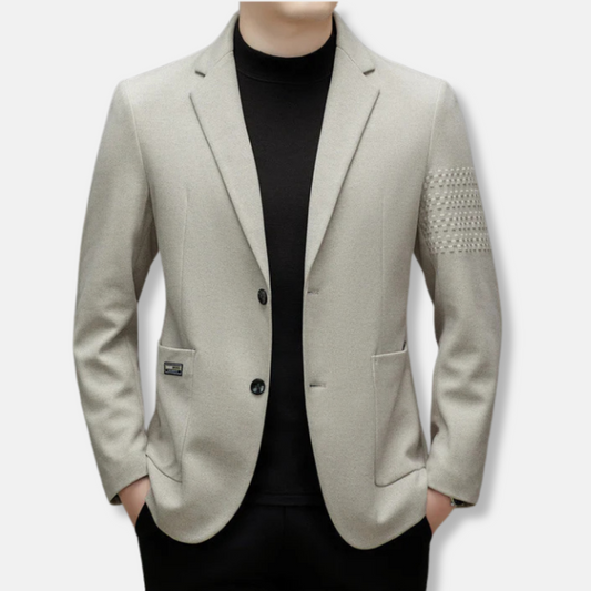 Herrkavaj – Slim Fit – Ullblandning – Enkelknäppt – Patchfickor – Broderad ärm