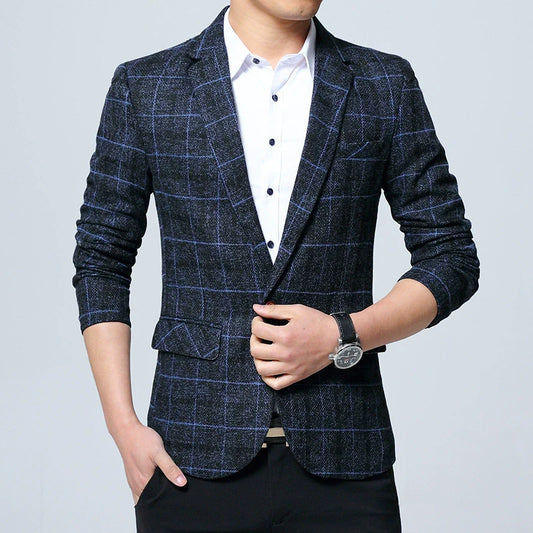 Herrkavaj – Slim Fit – Rutigt Mönster – Enkelknäppt – Klassisk Formell Stil