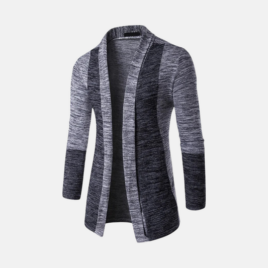 Herrkofta – Slim Fit – Lättstickad – Färgblockdesign – Öppen Front – Långärmad