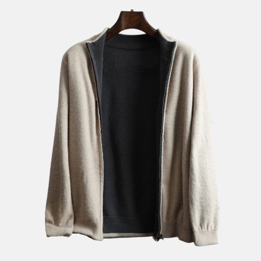 Herrkofta – Stickad Ullblandning – Avslappnad Passform – Vändbar – Hellång Dragkedja – Ståkrage