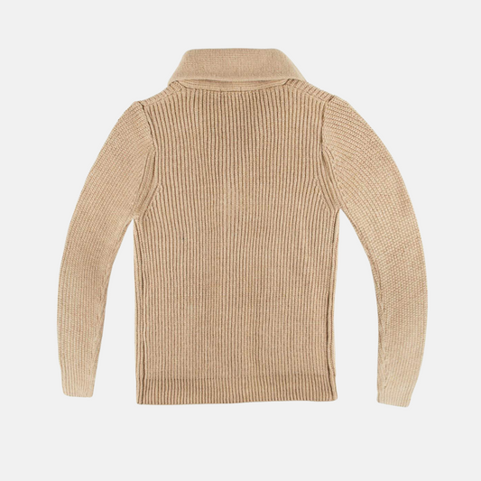 Herrkofta – Ullstickad – Normal passform – Sjalkrage – Kabelstickad – Knäppning fram
