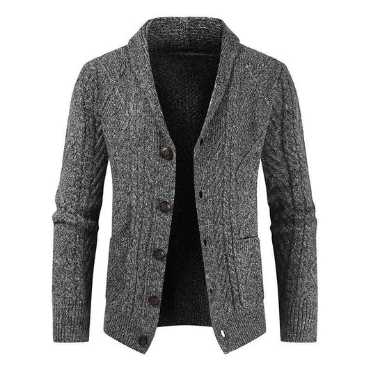 Herrkofta – Stickad Struktur – Sjalkrage – Dubbelknäppt – Bekväm och Varm