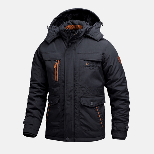 Herrrock – Midjelång – Varmt Foder – Huva med Fleece – Lös Passform – Många Fickor