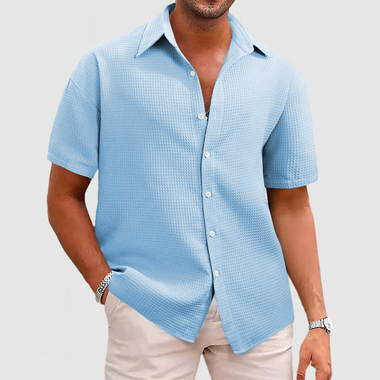Herrskjorta med kort ärm – Avslappnad passform – Waffle-stickad – Andningsbar design