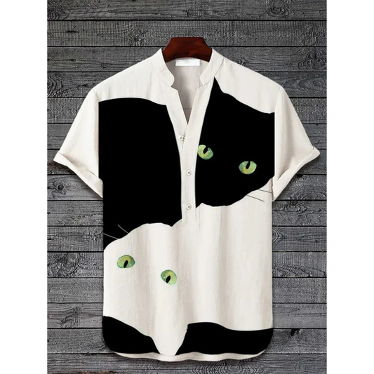 Herrskjorta – Avslappnad Passform – Kort Ärm – Andningsbar Mix – Konstnärligt Tryck