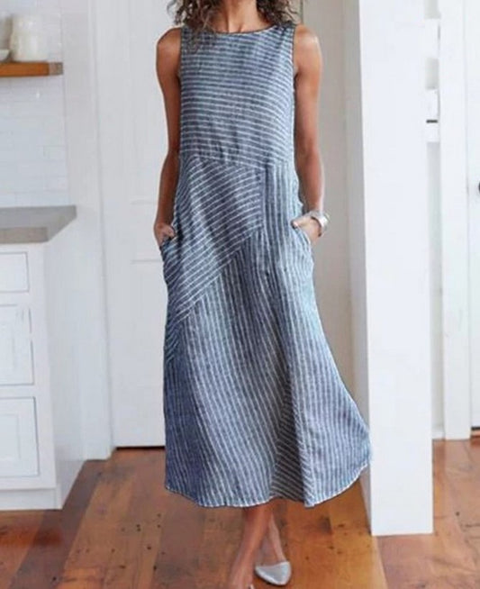 Kvinnors ärmlösa maxiklänning med ränder – Bekväm och chic