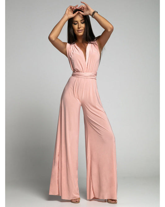 Dam Jumpsuit – Ärmös – Djup V-ringning – Vida Ben – Justerbar Midja – Luftigt Tyg