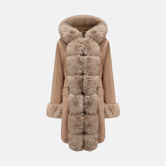 Dam Lång Kappa – Rak Passform – Fuskpälsdetaljer – Hellång med Dragkedja