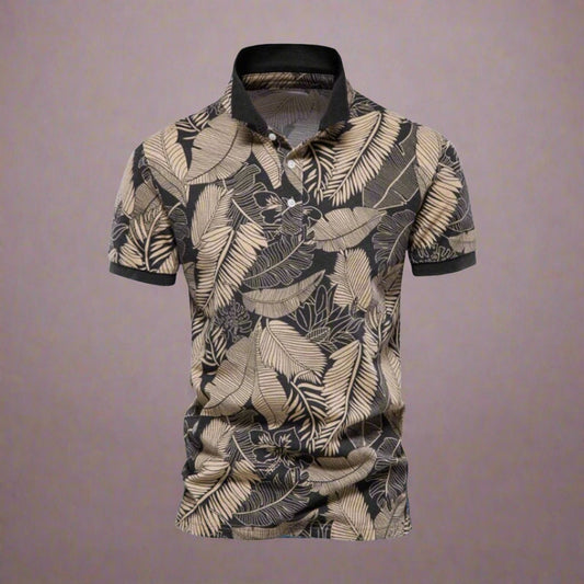 Herr Piké Polo - Andningsbar Bomull - Slim Fit - Tropiskt Blommönster - Kortärmad