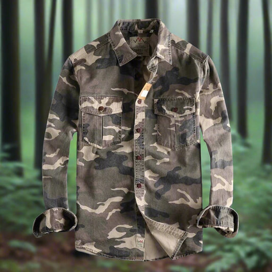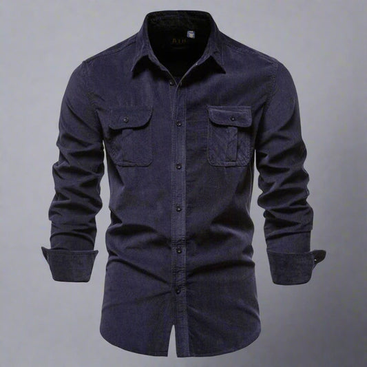 Herrskjorta i manchester - Långärmad - Fodrad skjortjacka med bröstfickor - Knäppning