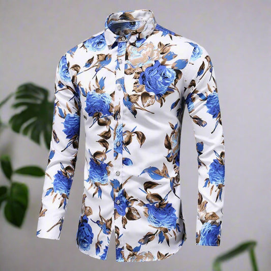 Herrskjorta - Blommigt Mönster - Långärmad - Knappstängning – Klassisk Krage
