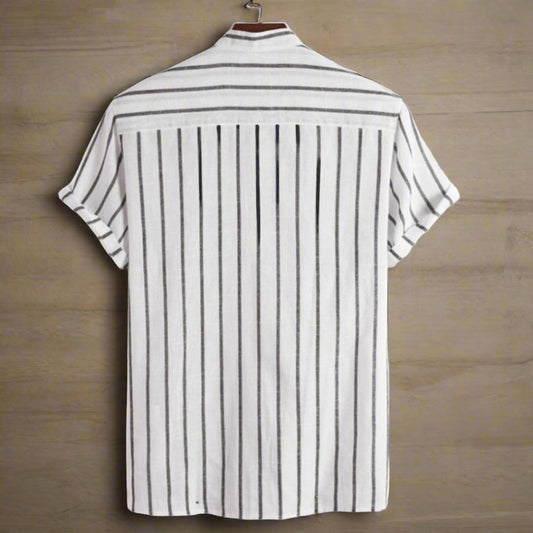Herrskjorta - Kortärmad Mandarin-krage - Randig - Avslappnad Passform