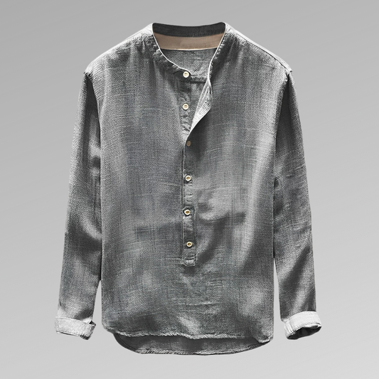 Herrskjorta - Andningsbar Linneblandning - Avslappnad Passform - Snörad Henleykrage