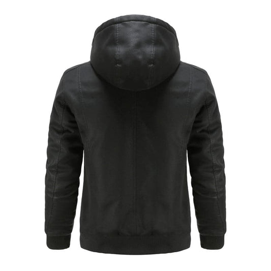 Herrjacka i läder - Huva med dragsko - Quiltad insida - Ribbad mudd - Ledig stil