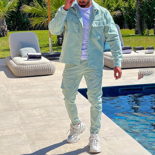 Herrars Utilityjacka & Cargo Byxor – Avslappnad Passform – Flera Fickor – Stilren & Funktionell