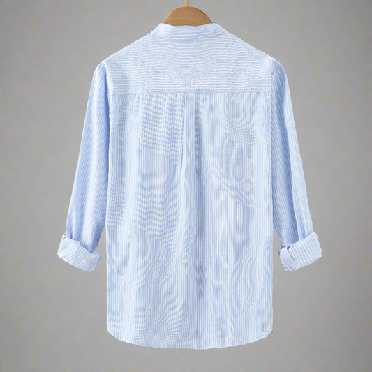 Herrskjorta - Slim Fit - Kraglös Design - Långärmad - Andningsbart Tyg