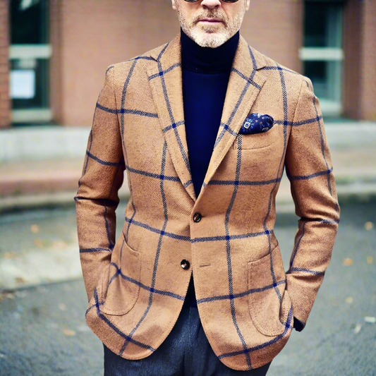 Herrkavaj - Rutig Design - Skräddarsydd Passform - Enkelknäppt med Notch-slag