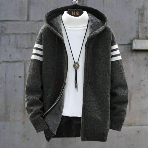 Herr Zip-Hoodie - Stickad Design - Fodrad för Komfort - Sportiga Ärmdetaljer