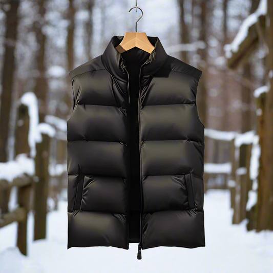 Herr Vadderad Väst - Lättviktsdesign - Vindtät med Hög Krage - Praktiska Fickor