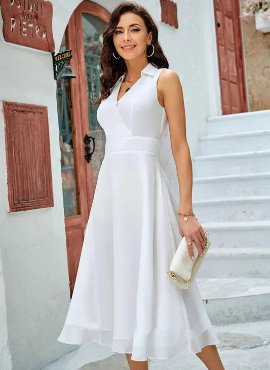 Klänning Dam - Vid Passform - Midi Längd - Kort Ärmar - Rund Hals - Bekväm och Stilren