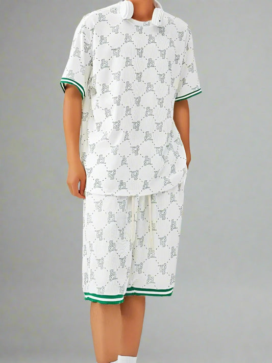 Herr Set – Kortärmad Henley T-Shirt & Shorts – Slim Fit – Andningsbart & Bekvämt