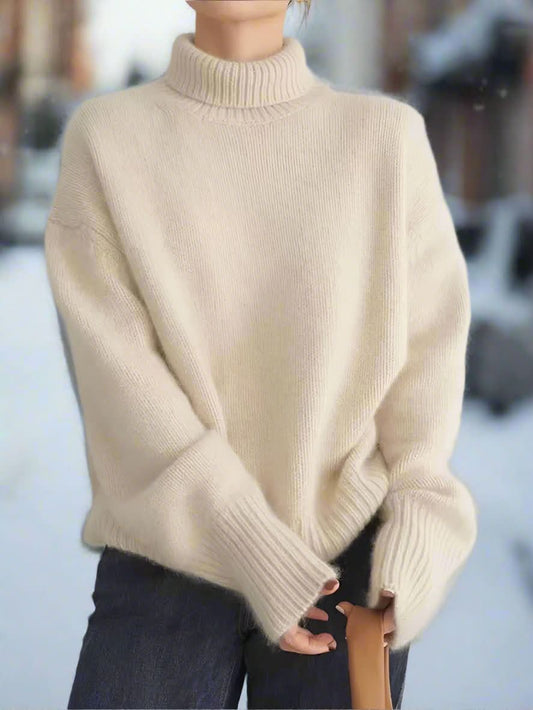 Damtröja - Oversized Passform - Hög Krage - Mjuk och Varm Stickad Design