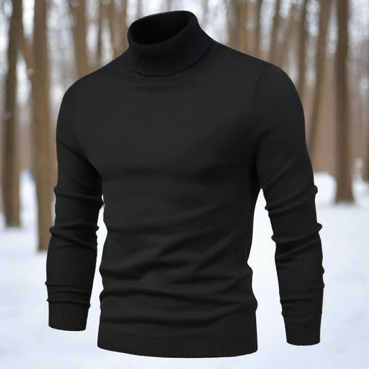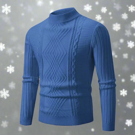 Herr Stickad Tröja - Hög Krage - Kabelstickad Design - Mjuk och Varm Ullblandning