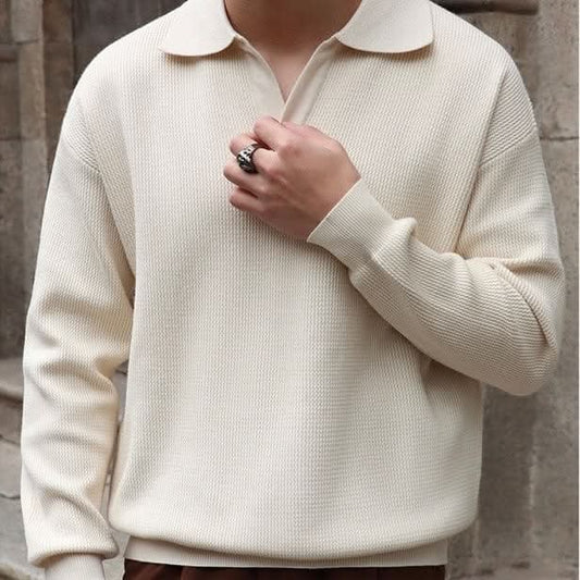 Herr Polotröja - Mjuk Stickad Bomull - Slim Fit - Långärmad Klassisk Design