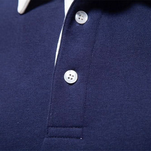 Herr Polotröja - Klassisk Krage - Ribbstickade Muddar - Knappslå för Mångsidig Stil