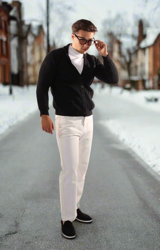 Herrkofta - Ribbstickad med Sjalkrage - Knäppning fram - Klassisk och Elegant
