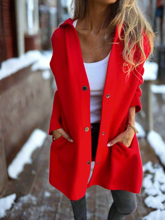Damjacka - Lös Passform - Knäppning Fram - Lårlängd - Vardaglig och Stilren
