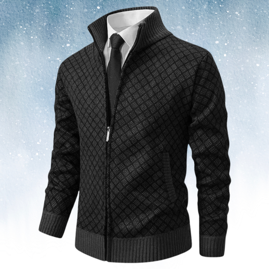 Herr Stickad Kofta - Slim Fit - Dragkedja & Hög Krage - Mönstrad - Ribbad Kant